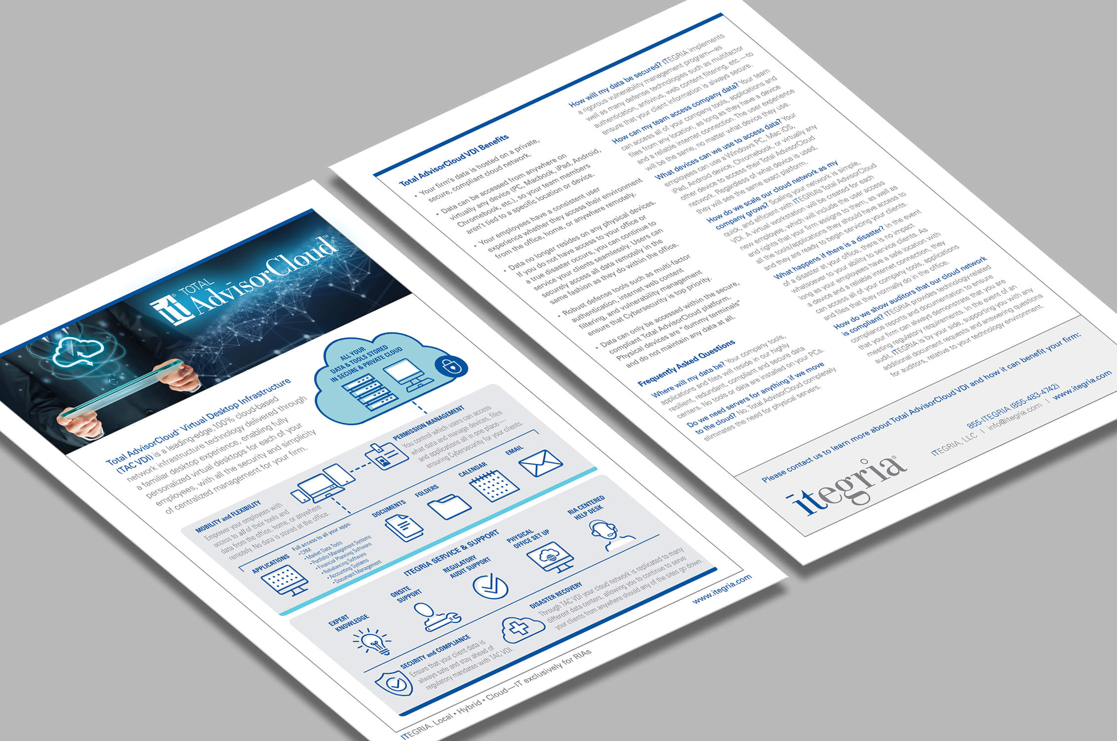 Mimic’s partners came up with a great new name, ITEGRIA, and DoubleTake Design was charged with designing a new logo and visual identity system that would appeal to the target market, RIAs. We designed and developed their website/website content and logo guidelines, marketing materials, a high-end presentation cover and folder. We also designed PowerPoint templates, an e-Book cover, signage for their office, tradeshow booths and presentations. Our role continues as their outsourced marketing department. Our social media partner helps with blogging and social media sharing on a regular basis.
